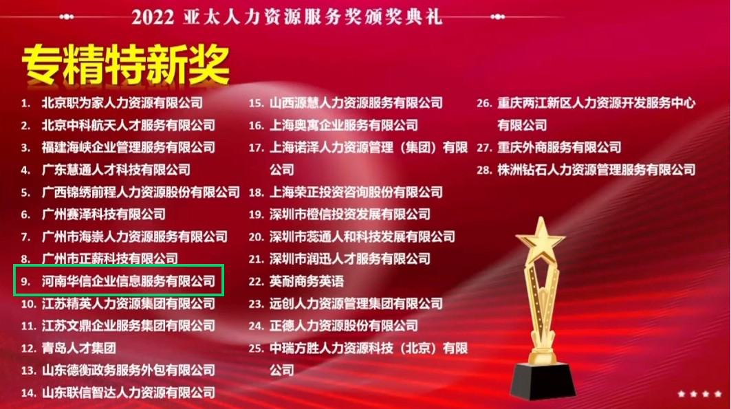 华企(qi)工厂(chang)主(zhu)(zhu)团品(pin)牌机(ji)构(gou)(gou)及(ji)小(xiao)我评为六项(xiang)泛(fan)太平洋(yang)劳(lao)动(dong)(dong)力资(zi)源业务(wu)(wu)人(ren)评奖(jiang),此中,华企(qi)工厂(chang)主(zhu)(zhu)团品(pin)牌子机(ji)构(gou)(gou)安徽华信(xin)工厂(chang)主(zhu)(zhu)信(xin)息(xi)内容业务(wu)(wu)人(ren)无数机(ji)构(gou)(gou)获得(de)“专精特新奖(jiang)”、襄城在古(gu)代业务(wu)(wu)人(ren)劳(lao)动(dong)(dong)力资(zi)源夫妻(qi)债(zhai)务(wu)(wu)园获得(de)“活气夫妻(qi)债(zhai)务(wu)(wu)园奖(jiang)”、高(gao)管(guan)长曹红(hong)娜获得(de)“优(you)等工厂(chang)主(zhu)(zhu)家奖(jiang)”、常务(wu)(wওu)总经(jing)理(li)司理(li)张(zhang)永谦获得(de)“職(zhi)業指导老师奖(jiang)”、总经(jing)理(li)司理(li)苗靖获得(de)“璀灿司理(li)人(ren)奖(jiang)”、总经(jing)理(li)司理(li)杜浩(hao)获得(de)“科技开发(fa)能(neng)手(shou)奖(jiang)”。