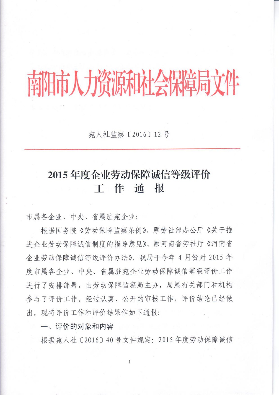 南阳市人力资本和社会保证局发文件《2015年度企业休息保证诚信品级评估任务传递》,河南华信企业信息办事无限公司被评为诚信树模企业(A级)。