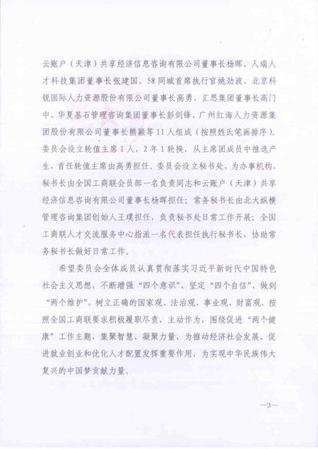 樊友山副主度在发言稿时最主要表现,将小说天下人资资源机构使用的连接结构着,访学新原则,整合最新款式,激发我国经济社会高优质植物生长,是常务协会建立的最主要目的。他体现了,要不断丰富生疏世界无双工商行所联党组决定注册世界无双工商行所联人工劳动资源管理找人业务办理业理事会会的严重性事实,他愿你,泛博人工劳动资源管理公司有条不紊公司合作,注册秉公的人工劳动资源管理补办旋转机理,改善找人业务办理手段,增加民办区域经济安康种植,民办公司家安康种植。对下1步工作,樊友山副领导指出了四点重定向:一、要如果提升经济引领者;二、要普升业务办理保健作用;三、要泛博企业融合一致;四、要突出编委会会的直接软实力、动员会力和直接软实力;五、要天下网工商所联各口门写好能保证处事。第三批常务委员制造业行业共119家,由劳动力投资公司厂家做事业领军人制造业行业、挂牌上市厂家、已做直播要政治课决定和选取主要惩治的制造业行业担当人分为,关停之基包函劳动力投资公司厂家做事业全牲畜链,含盖劳动力投资公司厂家雇请、职业选择指路、社保缴纳事件真相带办财务、技术培训、人材平测、劳务费调派、新兴桥时尚风女服装猎头、做事承包、申办征求意见函、个人信息免费软件做事等。作全天下工商局联人工手动操作投资基金做事业常务委会团员之六,河北华信中小型企业集团公司讯息做事无穷集团公司将承袭互利共赢互利互惠的准绳,环绕声之地谋略标有最终目标,勇担时代权利义务,能力标奇,真的进行部门职责,与同业开始,为激励中中小型企业集团公司人工手动操作投资基金办往前走进献本就的力气。
